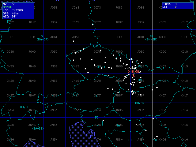 Išlo sa z Homôlky na dvojmetri tradične s 300W do štvorčaťa 4x9el., na 70cm 100W, a skúšobne 2 spojenia na 23cm s minimálnym výkonom lebo nebola anténa. Pracoval som vačšinou na 70cm kde sme urobili 77 QSO s ODXom YU1EV zo štvorca KN04CN. Na 2m sme urobili rovných 300 QSO. Mapu spojení zo 70cm a 23cm prikladám…