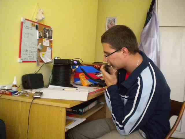 To bola dobrá príležitosť oprášiť moje QRPítko FT-817, a trošku si zavysielať. Pôvodne sme rozmýšlali že pôjdeme niekam von do prírody, no radšej sme ostali doma, nakoľko je Lenka nachladnutá. Tak som v Hôrke natiahol portablové invertované VEEčko. Stred som uviazal na balkóne a konce na plot a strom. Skoro mi ho síce zjedol pes Ronny, no zachránil som ho, a mohol som začať vysielať.
